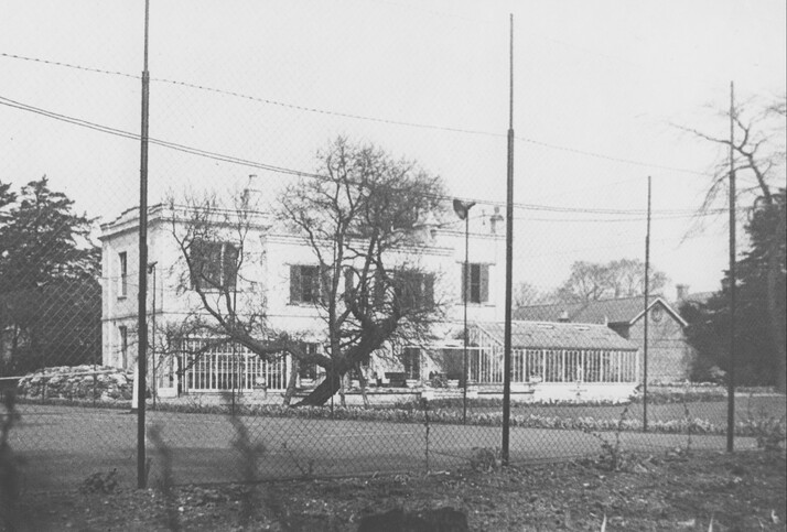 Rear view of Joyce House, Farm Hill Road. Built by the Joyce family who had an ammunition factory next to the house. The house was demolished in the 1960's and Joyce Court, a small residential estate was built on the site. This picture c1930. 'We used to go to Garden Parties at Joyce House when I was a child, the only other memory I have of it was the apple tree blossoms in the spring that hung over the wall and sent blossom confetti onto the dusty pavement of Farmhill Road'.